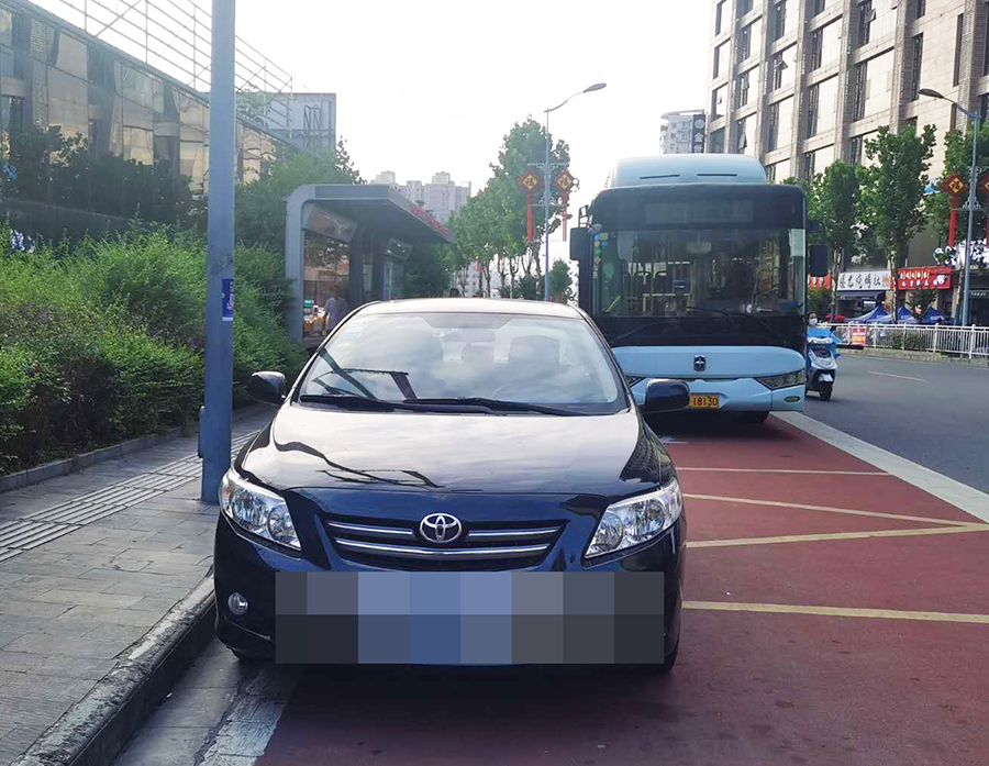 在金州廣場南站,十幾輛私家車“整齊劃一”的停在公交車站位置,地面紅色區(qū)域上的公交兩字也被完全覆蓋,從遠(yuǎn)處望去,站牌旁坐著幾個人正等待公交車的到來。在興華名城站,一輛私家車??吭诠卉囌厩埃倎淼墓卉嚐o法按其規(guī)定進(jìn)站停車。在西城閣站和漢城國際西站,幾輛私家車甚是“任性”,儼然將公交車站當(dāng)成了“停車場”,筆者在此駐足十幾分鐘,它們依然“紋絲不動”,有的車上甚至沒有車主。