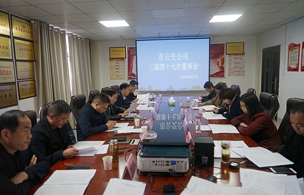 4月1日,市公交公司召開2021年第一次股東會暨二屆十七次董事會,公司全體股東、董事會成員參加會議,監(jiān)事會、審計監(jiān)督組成員、紀(jì)委書記列席會議。公司董事長張曉強(qiáng)主持會議。